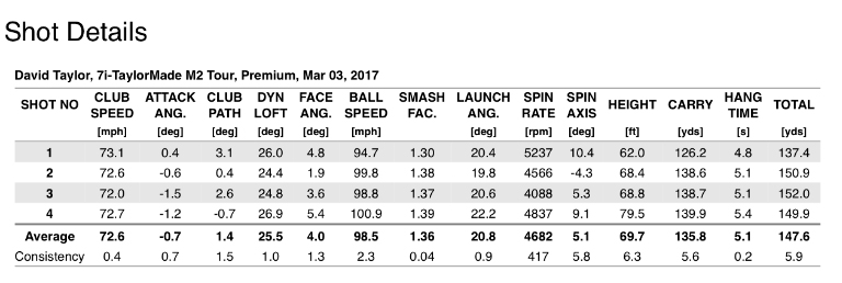 The comparison below shows the numbers for the old 7-iron (top) versus the new M1 version. As you can see, the change was quite significant: