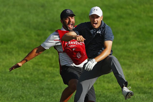 Recently voted the 2017 PGA Tour Tournament of the Year, because it had records in sales, attendance and fan engagement, the Travelers Championship again included that man Jordan Spieth. The tournament was won in dramatic fashion when Spieth holed his shot from the greenside bunker on the first playoff hole. Daniel Berger looked on in disbelief as Spieth celebrated with his caddie.
