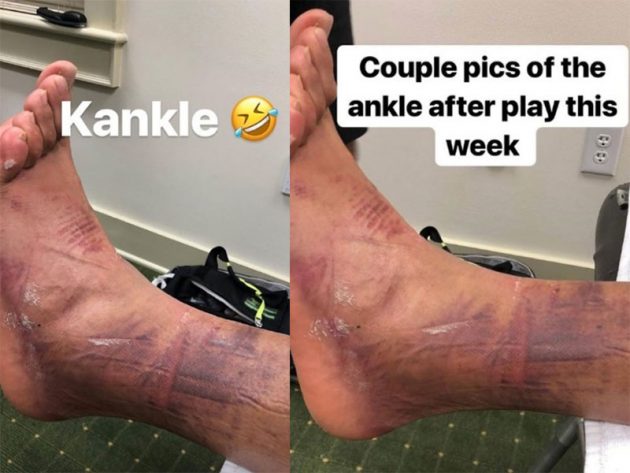 And now the new world number 32, fresh off a closing 66 at Augusta which included six birdies in his final seven holes, has posted images of his injured left ankle.